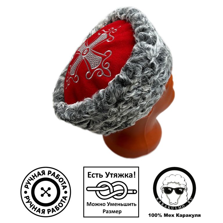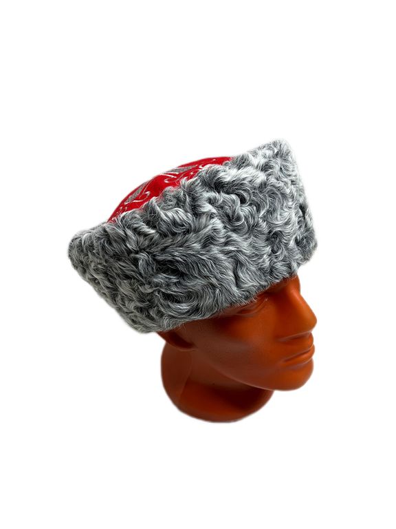 Кубанка из натурального серного каракуля, верх сукно с вышивкой.
