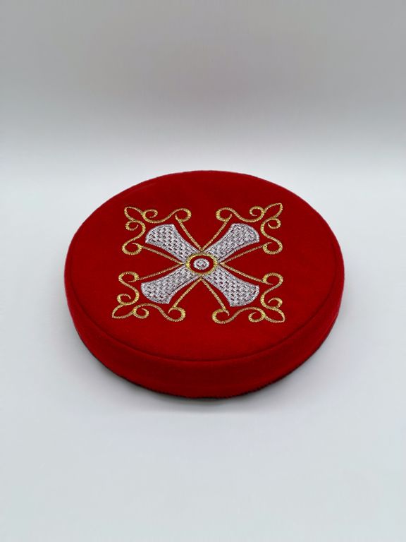 Сменный верх для кубанки. Красный вышитый крест золото